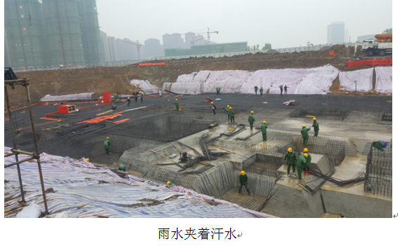 五月伊始,公司各兄弟項目部不斷傳來喜訊:蕪湖萬科城、信達天御、華府五期和森林城C4均傳來捷報,我信達公園里項目部也不甘示弱,在兄弟們?nèi)找辜娉田L(fēng)雨無阻的拼搏下,終于于2016年5月30日完成售樓部結(jié)構(gòu)封頂任務(wù),圓滿完成合同節(jié)點工期。信達.公園里項目S12#樓(售樓部)土建工程施工項目位于合肥市濱湖新區(qū)杭州路與廬州大道交口,總建筑面積4248.30平方米,占地面積約1900平方米,建筑高度度15.35米。結(jié)構(gòu)類型為現(xiàn)澆框架結(jié)構(gòu),地下1層為下沉庭院、商業(yè),負一層層高4.5米,地上3層為商業(yè),一層層高5.6米,二層層高4.8米,三層層高4.5米。信達.公園里項目S12#樓(售樓部)項目部,開工日期2016年4月15日,結(jié)構(gòu)封頂工期45天。該工程業(yè)態(tài)豐富,結(jié)構(gòu)形式復(fù)雜,且?guī)в幸粚拥叵率遥畹蛯痈?.5米,局部為高支模,且為汽車吊作業(yè);在工程施工階段,恰逢合肥陰雨天氣,45天的工期里下了十幾天的雨,且在施工過程中設(shè)計圖紙不斷的進行變更,在如此艱難的客觀條件下,項目部兄弟無畏艱難,齊心協(xié)力,通過增加班組的人力和物力投入,日夜兼程、風(fēng)雨無阻,終于克服的一切困難,圓滿的完成任務(wù),給業(yè)主交出了一份滿意的答卷。